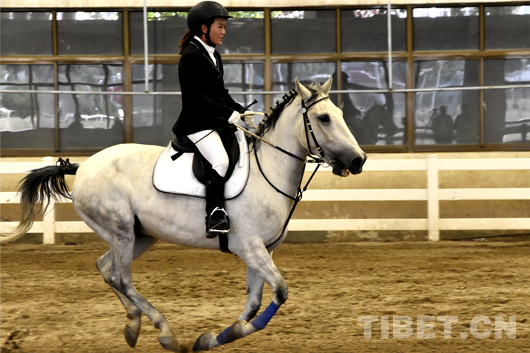 圖為7月15日競技馬術(shù)項(xiàng)目盛裝舞步比賽現(xiàn)場 攝影:德吉卓嘎