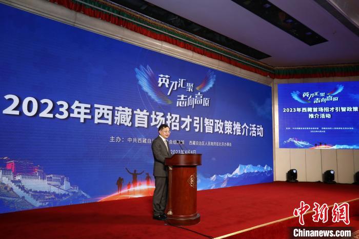 4月4日,“英才匯聚·志向高原”2023年西藏首場招才引智政策推介活動在北京舉行。圖為活動現(xiàn)場?!±钛┓濉z