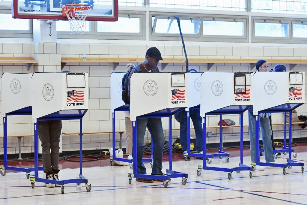 2024年11月5日,選民在美國(guó)紐約曼哈頓一處投票站填寫選票。新華社記者李睿攝