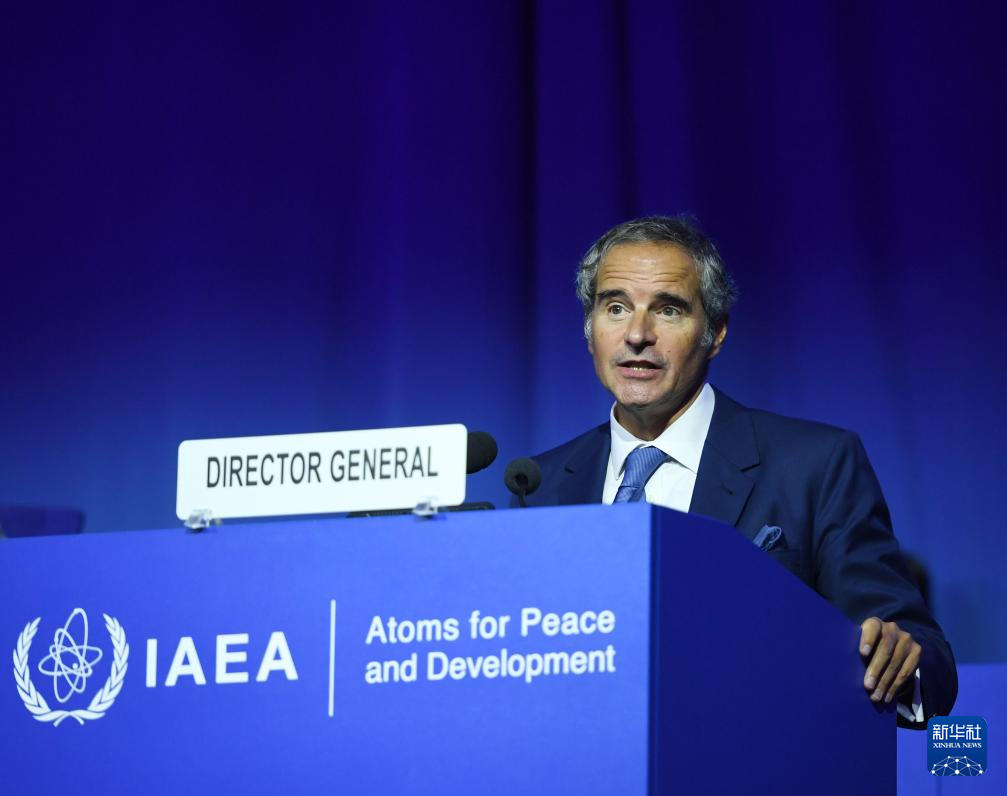 9月15日,在奧地利維也納,國(guó)際原子能機(jī)構(gòu)總干事格羅西在國(guó)際原子能機(jī)構(gòu)第69屆大會(huì)上致辭。新華社記者 賀燦鈴 攝