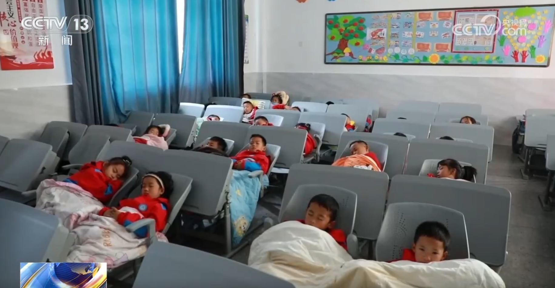 這里的課桌椅也與眾不同,可以根據(jù)孩子的身高調(diào)節(jié)高度,椅子向后放倒就變成一張迷你小床。每天午休時間,孩子們就可以直接躺臥在椅子上睡午覺。