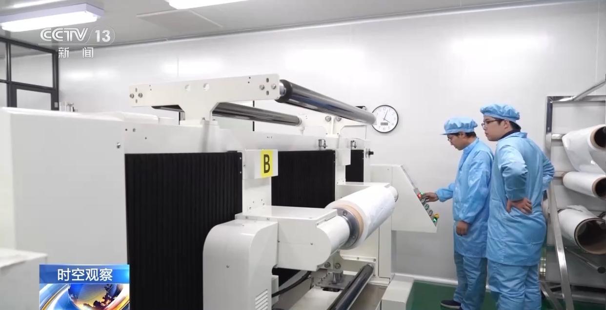 而在另一頭的這家固態(tài)電池配件制造企業(yè),一款固態(tài)無孔電解質(zhì)隔膜正在有序生產(chǎn)中。從基膜變身電解質(zhì)膜的質(zhì)變,關(guān)鍵就在于灰色的高分子材料,負責(zé)人告訴記者,這款材料能夠提升隔膜的安全性、可靠性并延長使用壽命,很大程度保障了固態(tài)電池的制作所需。