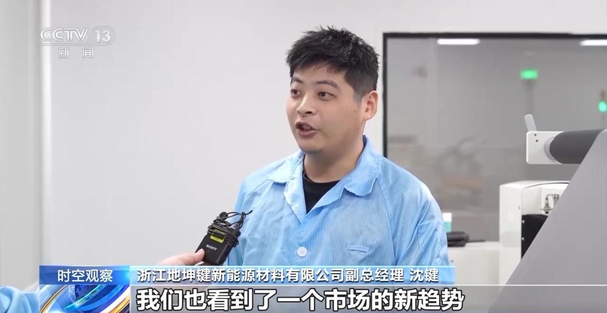 浙江地坤鍵新能源材料有限公司副總經(jīng)理沈鍵:我們也看到了市場的新趨勢,比如說折疊屏手機、智能穿戴設(shè)備的普及,也對電池的續(xù)航提出了更高的要求。我們也在固態(tài)電池方面做技術(shù)攻關(guān),力爭在下一代產(chǎn)品中得到技術(shù)突破。