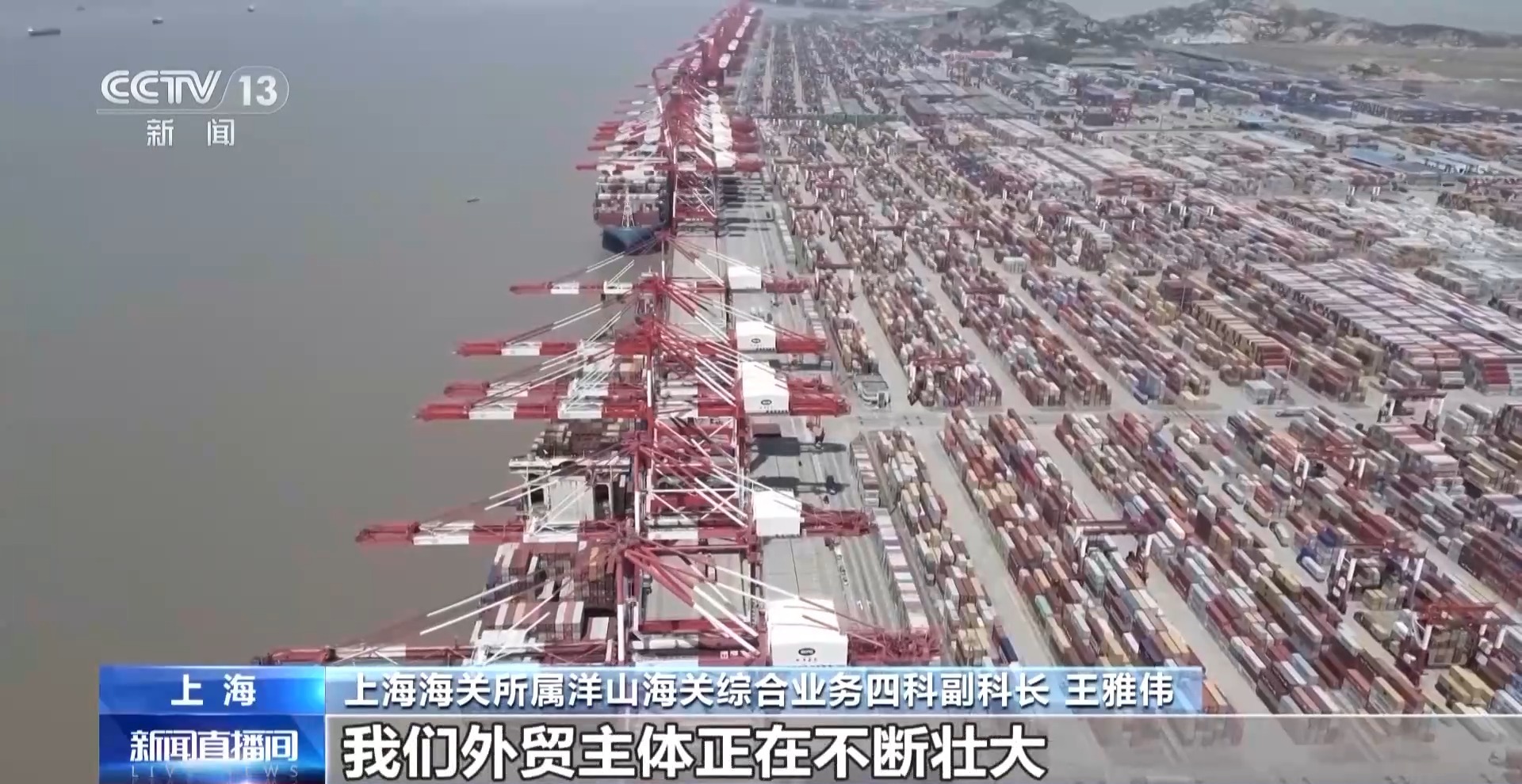 上海海關所屬洋山海關綜合業(yè)務四科副科長 王雅偉:今年1月份以來,我們共受理海關進出口報關單3.3萬份,較去年同期增長了近兩個百分點。這些數(shù)據(jù)讓我們明顯感覺到,外貿(mào)主體正在不斷壯大,外貿(mào)市場活力也在持續(xù)增強。