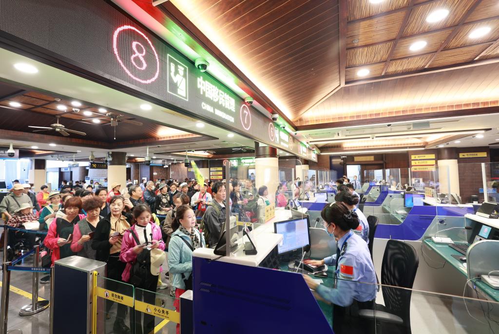 1月3日,在三亞鳳凰島國(guó)際郵輪港口岸,邊檢部門(mén)為郵輪旅客辦理通關(guān)手續(xù)。(楊冠宇 攝)