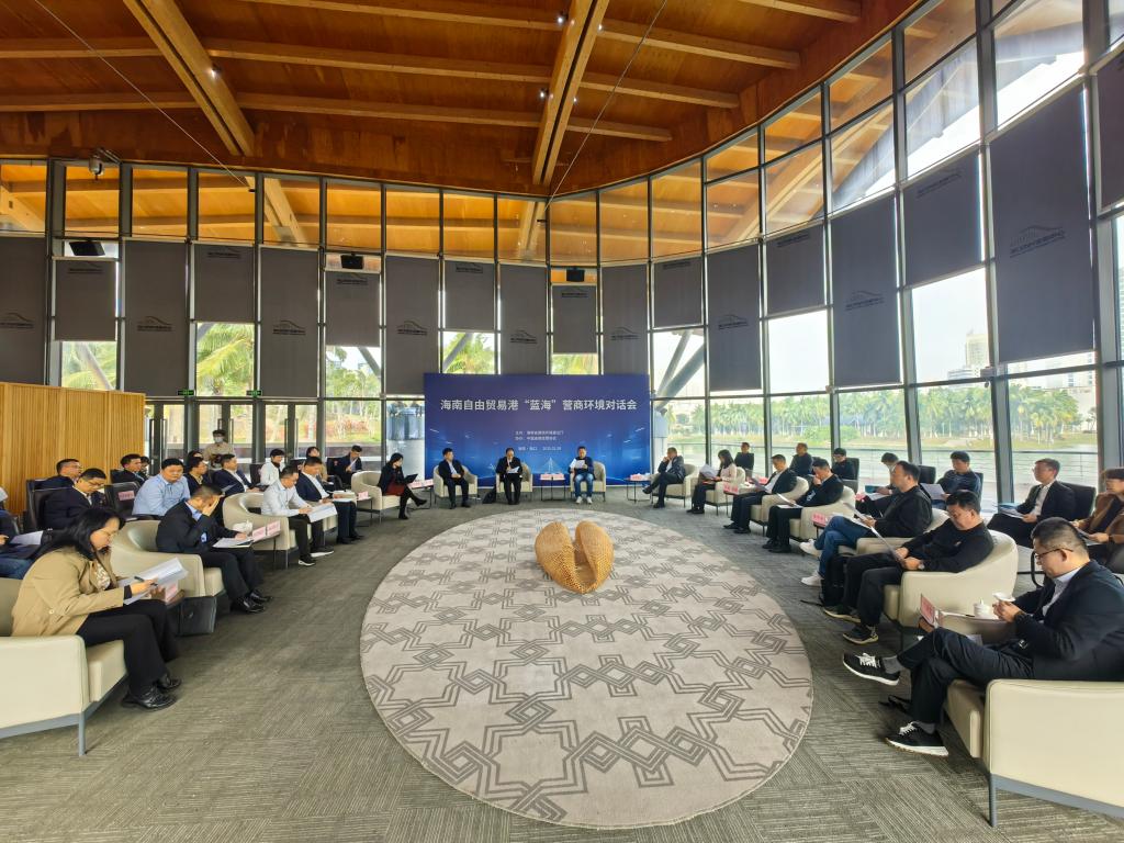 這是2025年1月9日舉行的海南自由貿(mào)易港“藍(lán)?!睜I(yíng)商環(huán)境對(duì)話(huà)會(huì)現(xiàn)場(chǎng)。新華社記者吳茂輝 攝