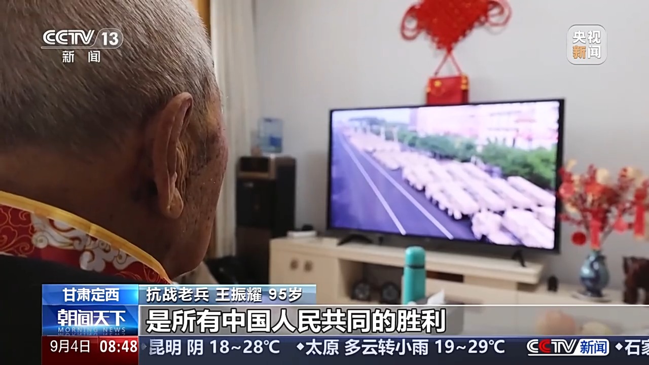 抗戰(zhàn)老兵 王振耀:抗日戰(zhàn)爭的勝利是所有中國人共同的勝利,我們犧牲了多少同志,才贏得了民族的獨(dú)立和偉大的勝利。這次閱兵看到了祖國的富強(qiáng),人民軍隊(duì)的強(qiáng)大,武器的先進(jìn),軍隊(duì)精神得到了很好的傳承。