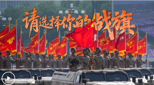 80面抗戰(zhàn)英模部隊榮譽旗幟組成戰(zhàn)旗方隊,