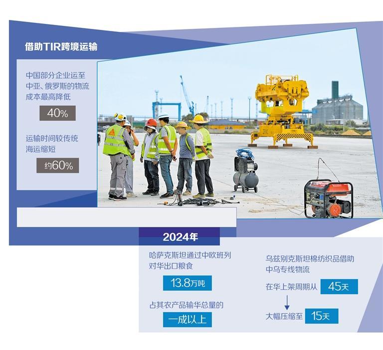 在區(qū)域產(chǎn)業(yè)鏈協(xié)同方面,TIR運(yùn)輸也為企業(yè)與成員國(guó)帶來(lái)了實(shí)實(shí)在在的收益:中國(guó)部分企業(yè)借助TIR跨境運(yùn)輸,將運(yùn)至中亞、俄羅斯的物流成本最高降低40%,運(yùn)輸時(shí)間較傳統(tǒng)海運(yùn)縮短約60%;2024年,哈薩克斯坦通過(guò)中歐班列對(duì)華出口糧食13.8萬(wàn)噸,占其農(nóng)產(chǎn)品輸華總量的一成以上;烏茲別克斯坦的棉紡織品借助中烏專(zhuān)線物流,在華上架周期從45天大幅壓縮至15天。在產(chǎn)業(yè)鏈協(xié)同層面,汽車(chē)零部件、電子元件等中間品成了跨境電商新增長(zhǎng)點(diǎn),標(biāo)志著區(qū)域合作正從商品貿(mào)易向產(chǎn)業(yè)鏈深度融合升級(jí),通過(guò)降成本、提效率、拓品類(lèi),實(shí)現(xiàn)了上下游產(chǎn)業(yè)鏈的互利共贏。