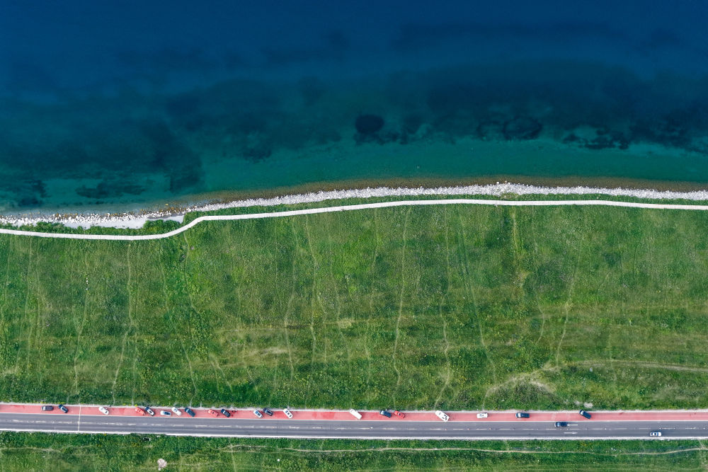 ↑ 9月10日拍攝的賽里木湖和湖畔公路。