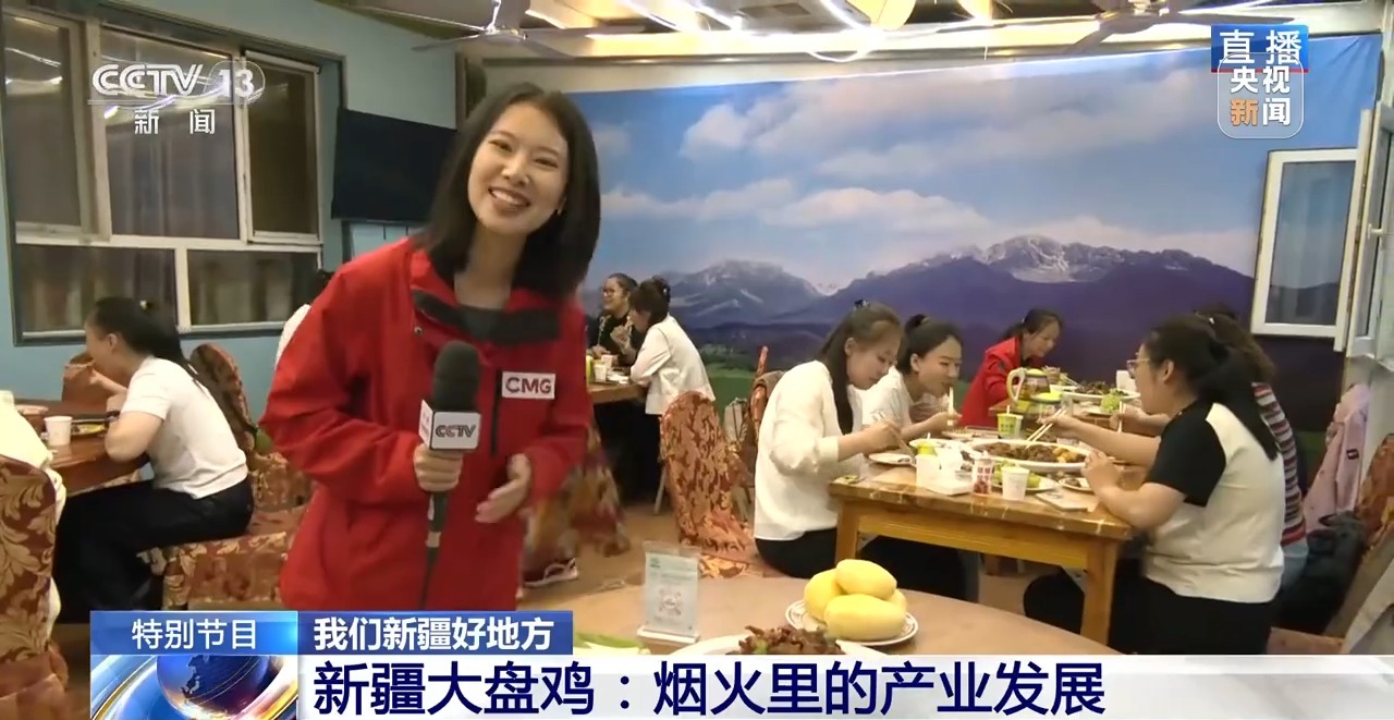 說完了主角,再來說說配菜。這里面的土豆來自博爾通古鄉(xiāng)。最關(guān)鍵的辣椒,是當(dāng)?shù)氐闹饕r(nóng)作物,來自“辣椒之鄉(xiāng)”安集海鎮(zhèn)。過去這里的辣椒只是農(nóng)民零散種植,如今已經(jīng)形成了從育種、種植、加工到銷售的完整產(chǎn)業(yè)鏈。這些辣椒不僅給大盤雞“注入靈魂”,也滿足了全國(guó)的餐桌需求,還出口到韓國(guó)、日本等地。