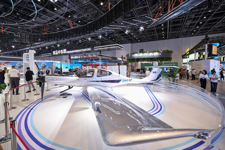 這是2025年5月22日在第四屆中國-中東歐國家博覽會暨國際消費(fèi)品博覽會“數(shù)智中東歐”展區(qū)拍攝的輕型飛機(jī)。5月22日至25日,第四屆中國-中東歐國家博覽會暨國際消費(fèi)品博覽會在浙江寧波舉行。新華社記者 江漢 攝