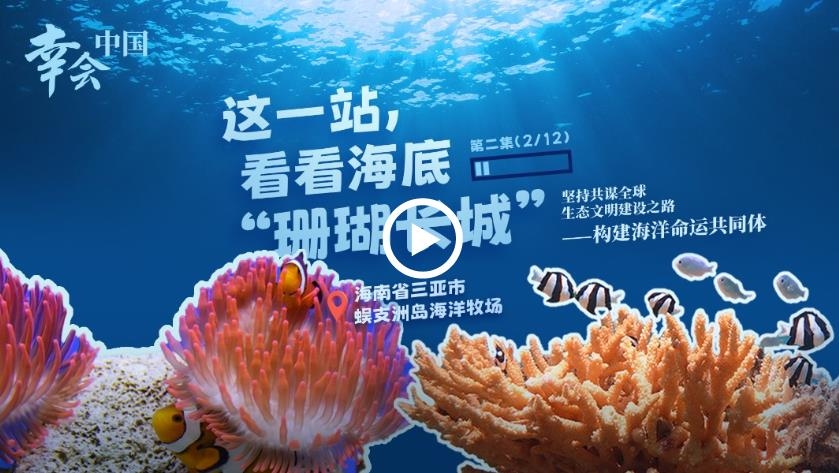 這一站,我們來到了海南三亞,一同潛入這片生命蓬勃的藍(lán)色世界。在蜈支洲島,中國首個熱帶海洋牧場,海洋守護(hù)者們花了數(shù)十年時間培育了30萬株珊瑚,構(gòu)筑起了一座真正的海底“長城”。海底的珊瑚如森林般繁茂,消失的魚群也因此重回海底家園,海洋生態(tài)仿佛重獲新生。在習(xí)近平生態(tài)文明思想的指引下,這里的生態(tài)修復(fù)不僅彰顯了保護(hù)的重要性,更是共謀全球生態(tài)文明之路的生動實踐。中國堅持守護(hù)海洋生態(tài),用行動書寫“海洋命運共同體”的信念。