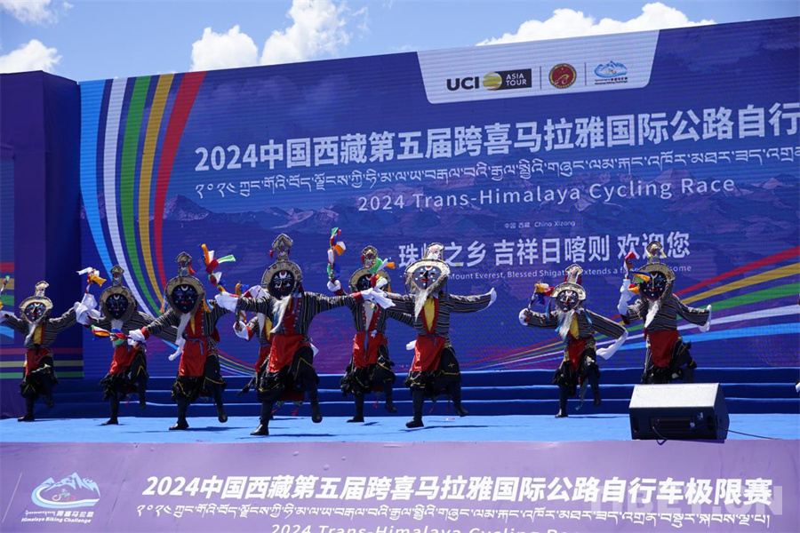 中國西藏網訊 8月25日中午11時30分,在日喀則賽段的終點,觀眾搖旗吶喊迎接激烈角逐90.06公里的自行車運動員們。隨著日喀則賽段順利完賽,2024中國西藏第五屆跨喜馬拉雅國際公路自行車極限賽圓滿結束。