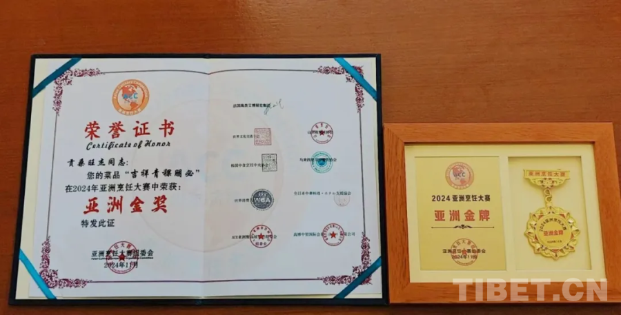 圖為獲獎(jiǎng)證書(shū)及獎(jiǎng)牌 圖源:西藏日?qǐng)?bào)