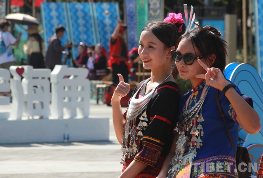 圖為第十二屆全國(guó)少數(shù)民族傳統(tǒng)體育運(yùn)動(dòng)會(huì)民族大聯(lián)歡活動(dòng)現(xiàn)場(chǎng),來(lái)賓與身著藏族服飾的演員合影 攝影:劉莉