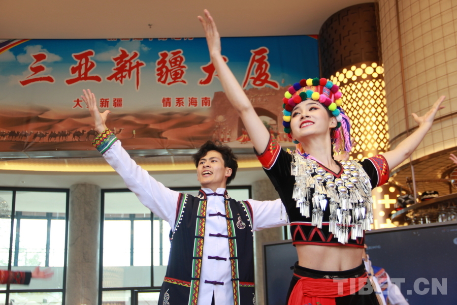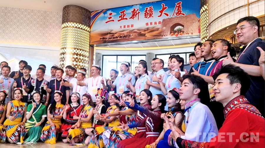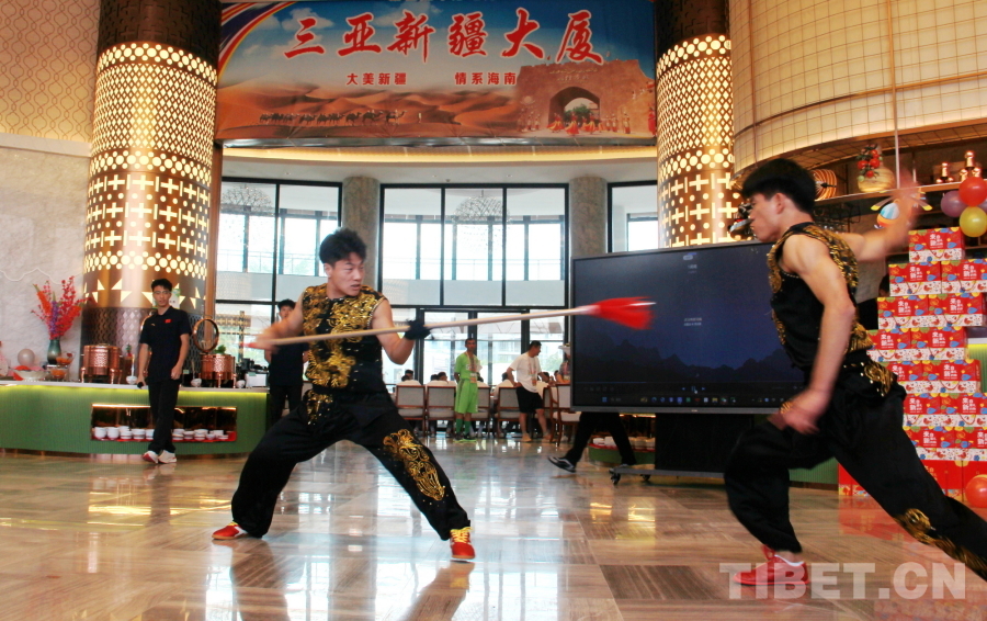 中國(guó)西藏網(wǎng)訊 精彩的傳統(tǒng)武術(shù)、悠揚(yáng)的歌聲、優(yōu)美的舞蹈……一陣陣掌聲、笑聲、歡呼聲從新疆代表團(tuán)駐地海南三亞新疆大廈傳出。11月27日,新疆代表團(tuán)邀請(qǐng)湖南、云南、黑龍江代表團(tuán)來到駐地舉行主題為“交各民族好朋友”的聯(lián)誼活動(dòng)。