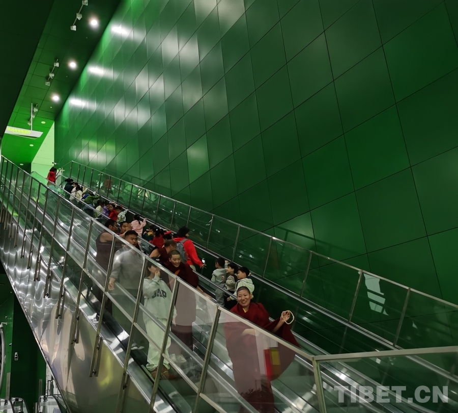 當(dāng)日下午,西藏佛學(xué)院一行來(lái)到中國(guó)科學(xué)技術(shù)館參觀學(xué)習(xí)。走進(jìn)展廳,師生們立即被展陳的航天器材吸引,紛紛上前合影留念??萍拣^內(nèi)有很多孩子正在參觀,部分外向的孩子熱情地與西藏佛學(xué)院師生們打招呼,師生們也歡喜地回應(yīng)著。雙向扶梯上,孩子們熱情洋溢地上行,恰逢佛學(xué)院的師生們下行,彼此擦肩而過(guò)、揮手示意。