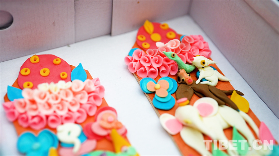 羅布大叔的老家在日喀則市仁布縣普松鄉(xiāng),他制作酥油花已經(jīng)有20多年的時間了。在過完日喀則農(nóng)事新年后,他便在拉薩擺攤售賣酥油花?!安貧v新年是我們傳統(tǒng)節(jié)日中最隆重的節(jié)日,家家戶戶在新的一年里都想有一個吉祥如意的好兆頭,所以這段時間在拉薩的生意特別好。酥油花的制作是一項(xiàng)傳統(tǒng)技藝,不僅是我養(yǎng)家糊口的途徑之一,也是文化的不斷傳承?!绷_布說,“我的新年愿望很簡單,就是希望能夠過個好年!”