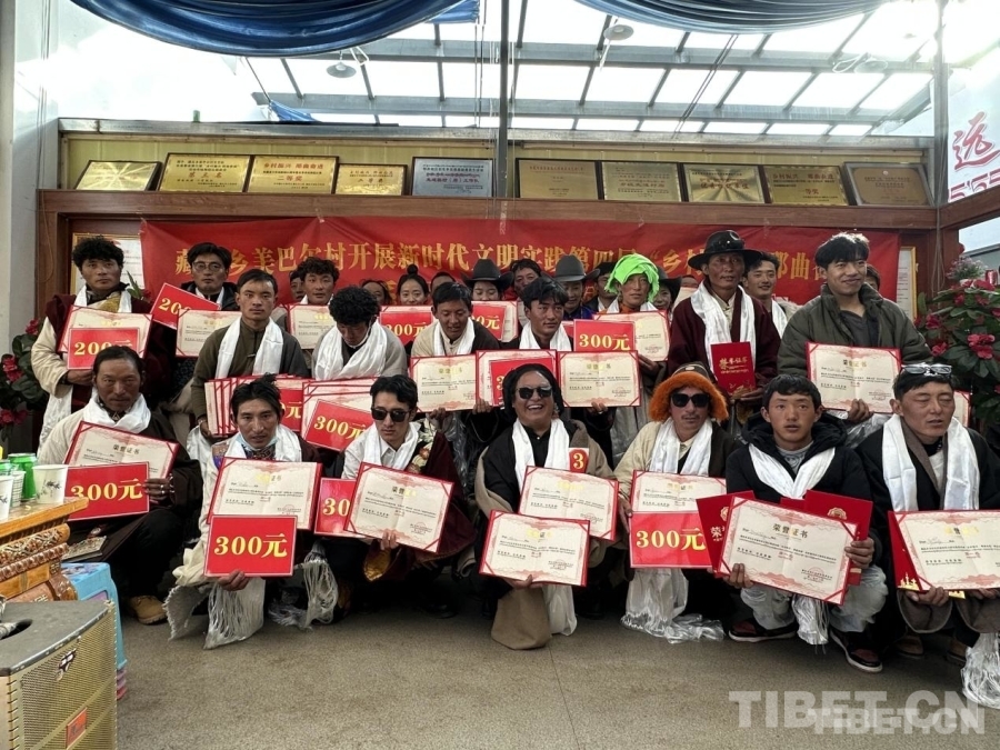 圖為藏比鄉(xiāng)美巴爾村比賽結束后,獲獎者合影留念
