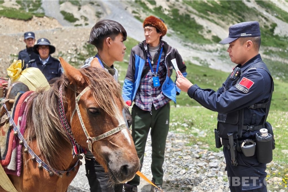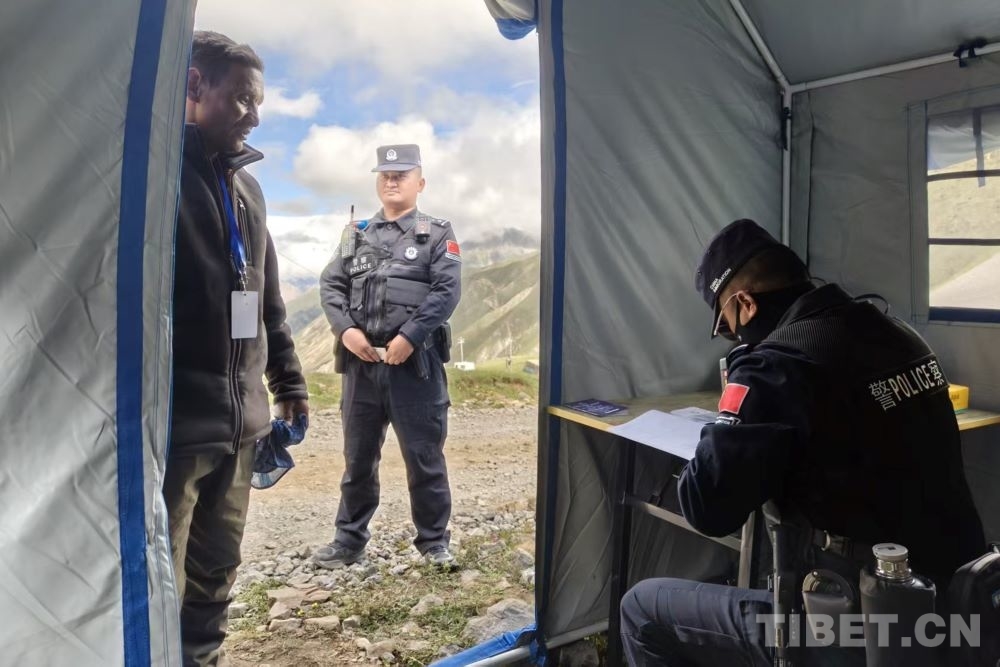 圖為吉隆出入境邊防檢查站民警正在貢當傳統(tǒng)邊貿(mào)點登記入境邊民信息 攝影:向巴澤平