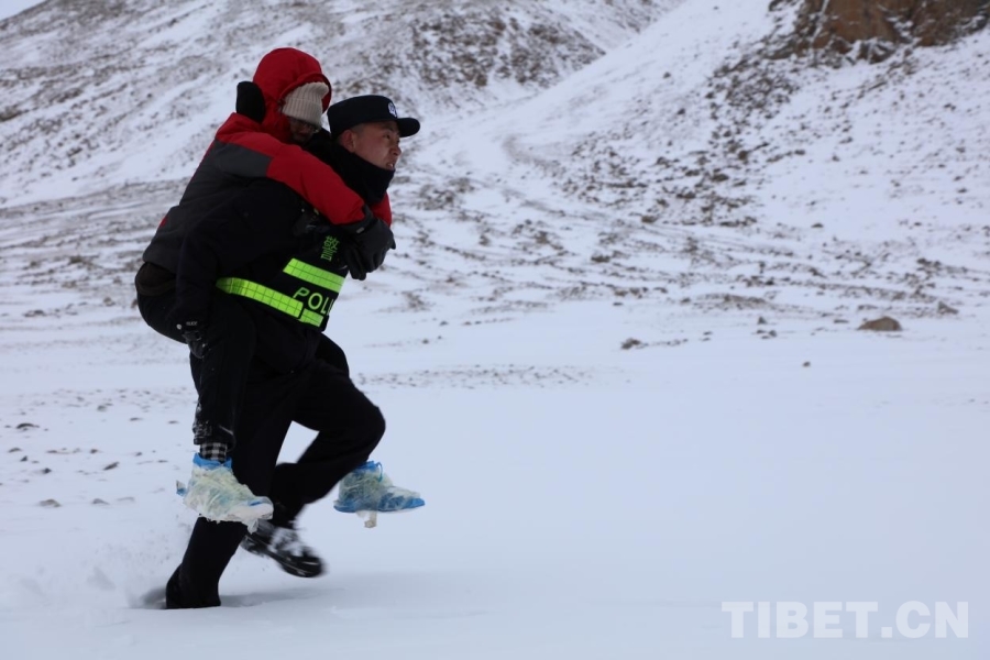 圖為塔爾欽邊境派出所民警在雪中實(shí)施救援受訪者供圖