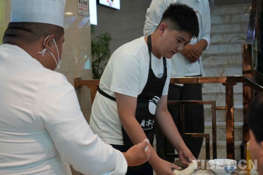 在研學(xué)手冊里,胡俊賢詳細(xì)記錄了這兩天的行程?!霸趤淼竭@里的第一餐后,我就被這里的美食驚艷到了,青海拉面讓我刷新了對拉面認(rèn)識的新高度?!钡竭_(dá)西寧后,研學(xué)團(tuán)的成員們就去到當(dāng)?shù)匾患矣忻睦娴?,了解青海拉面歷史,感受傳統(tǒng)技藝的魅力。胡俊賢還在拉面師傅的指導(dǎo)下嘗試了制作拉面,他說:“制作拉面比較難,但是還挺好玩的,很想繼續(xù)嘗試?!?nbsp;