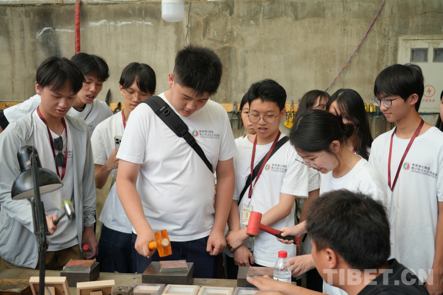 中國西藏網訊 7月17日,2025澳門青少年青海研學團的同學們走進位于青海省西寧市湟中區(qū)魯沙爾鎮(zhèn)的陽坡銀銅器加工產業(yè)園,在一錘一鏨中感受傳統(tǒng)技藝的魅力。
