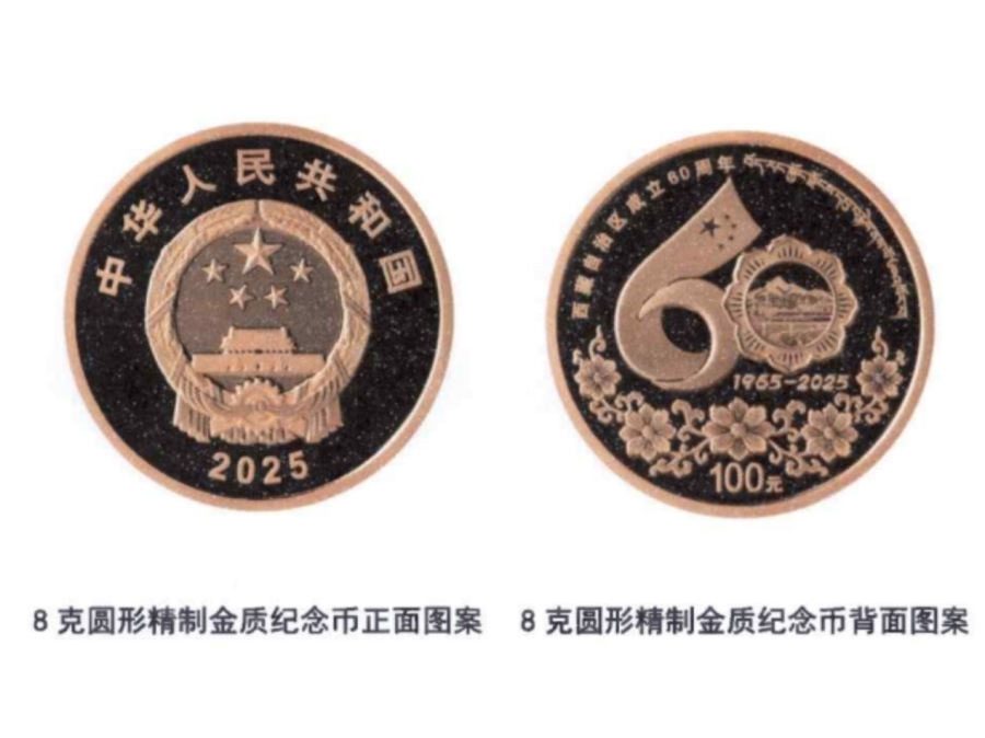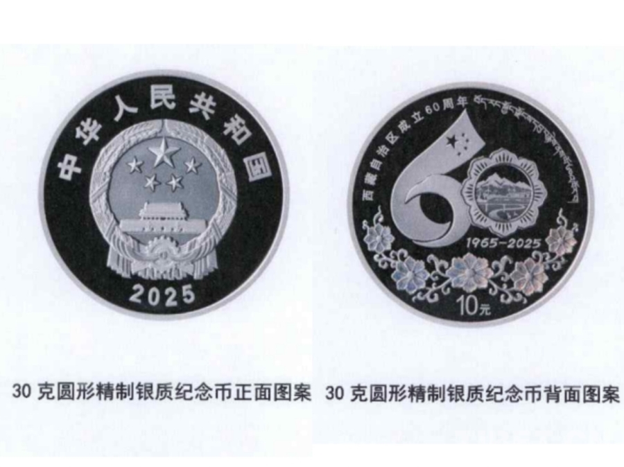 紀(jì)念幣正面圖案為中華人民共和國國徽,背面采用西藏自治區(qū)成立60周年慶祝活動徽標(biāo)為主圖案,配以格桑花紋飾,并刊有“西藏自治區(qū)成立60周年”國家通用語言文字、藏語言文字字樣及面額。中國金幣集團(tuán)總經(jīng)理井軍介紹,該套紀(jì)念幣采用了浮雕、鏡面、激光噴砂等先進(jìn)造幣工藝,充分展現(xiàn)了西藏的發(fā)展成就和獨(dú)特文化。