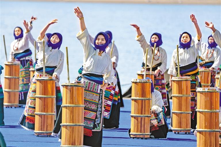 開湖日歌舞表演現(xiàn)場(chǎng)。記者 阿旺尼瑪 貢曲羅杰 攝