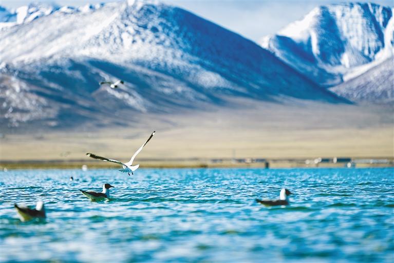 納木錯(cuò)的棕頭鷗。記者 阿旺尼瑪 貢曲羅杰 攝