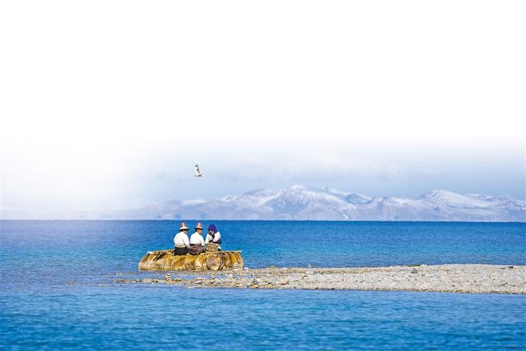 游客在納木錯(cuò)打卡拍照。記者 阿旺尼瑪 貢曲羅杰 攝