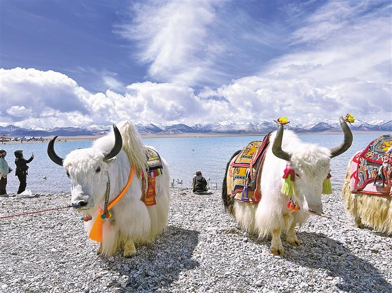 納木錯(cuò)景區(qū)的牦牛。記者 劉斯宇 彭慶 劉琳琳 攝
