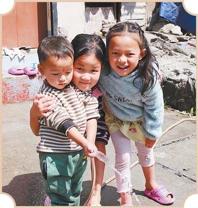尼泊爾達都巴尼村的孩子們笑容燦爛。記者 張博嵐攝
