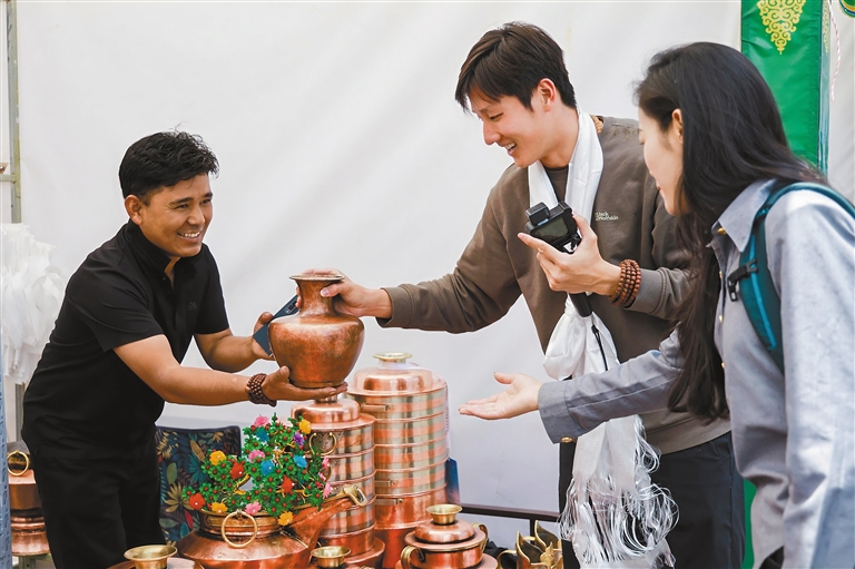在西藏非遺工坊促銷展示活動中直播帶貨。