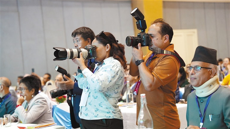 參加活動的尼泊爾嘉賓在會場拍攝。