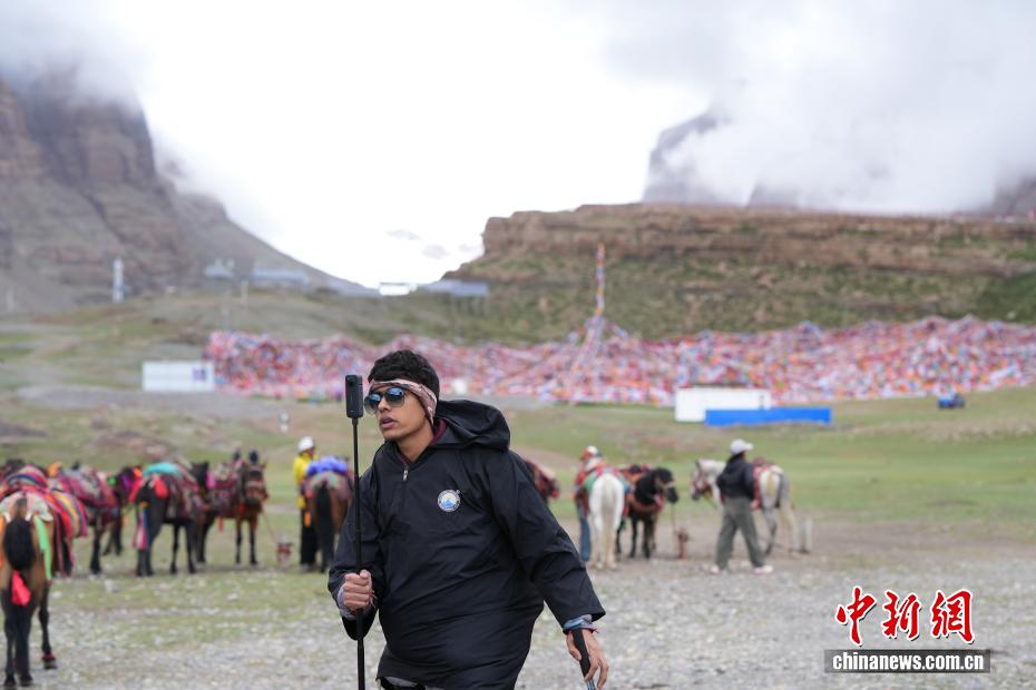 7月21日,一位來自印度的徒步旅行者在岡仁波齊山腳拍攝徒步視頻。岡仁波齊位于西藏阿里地區(qū)普蘭縣境內(nèi),是岡底斯山的主峰,也是藏傳佛教的神山之一,每年吸引眾多信徒前往轉(zhuǎn)山,并衍生出徒步旅行的經(jīng)典路線。每年來自國內(nèi)外的徒步旅行者為當?shù)貏?chuàng)造就業(yè)機會的同時,也推動了文旅產(chǎn)業(yè)的發(fā)展。中新社記者 張祥毅 攝