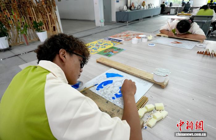 8月6日,拉薩市蓮華之寶中華藏瓷文化旅游體驗園景區(qū)里,工作人員正在陶瓷繪畫。蓮華之寶中華藏瓷文化旅游體驗園景區(qū)集展覽、銷售與文化體驗于一體,通過與高校開展校企合作等方式,將唐卡繪畫藝術與陶瓷工藝結合,傳播優(yōu)秀傳統(tǒng)文化。中新社記者 李林 攝