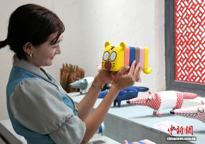 8月6日,拉薩市蓮華之寶中華藏瓷文化旅游體驗園景區(qū)里,工作人員展示卡通陶瓷工藝制品。蓮華之寶中華藏瓷文化旅游體驗園景區(qū)集展覽、銷售與文化體驗于一體,通過與高校開展校企合作等方式,將唐卡繪畫藝術與陶瓷工藝結合,傳播優(yōu)秀傳統(tǒng)文化。中新社記者 李林 攝