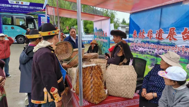 非遺展區(qū)同樣引人注目。展區(qū)內(nèi),珞巴織布、珞巴竹編、工布氆氌、工布畢秀四項(xiàng)非遺項(xiàng)目的傳統(tǒng)手工制品精巧陳列,這些凝聚匠心的展品集中展現(xiàn)了米林市非物質(zhì)文化遺產(chǎn)的深厚底蘊(yùn)和傳承活力,讓現(xiàn)場觀眾近距離感受了非遺文化的獨(dú)特魅力。
