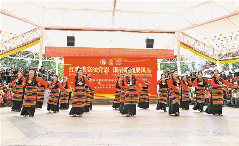 圖為老年人在表演傳統(tǒng)歌舞。記者 洛桑 攝