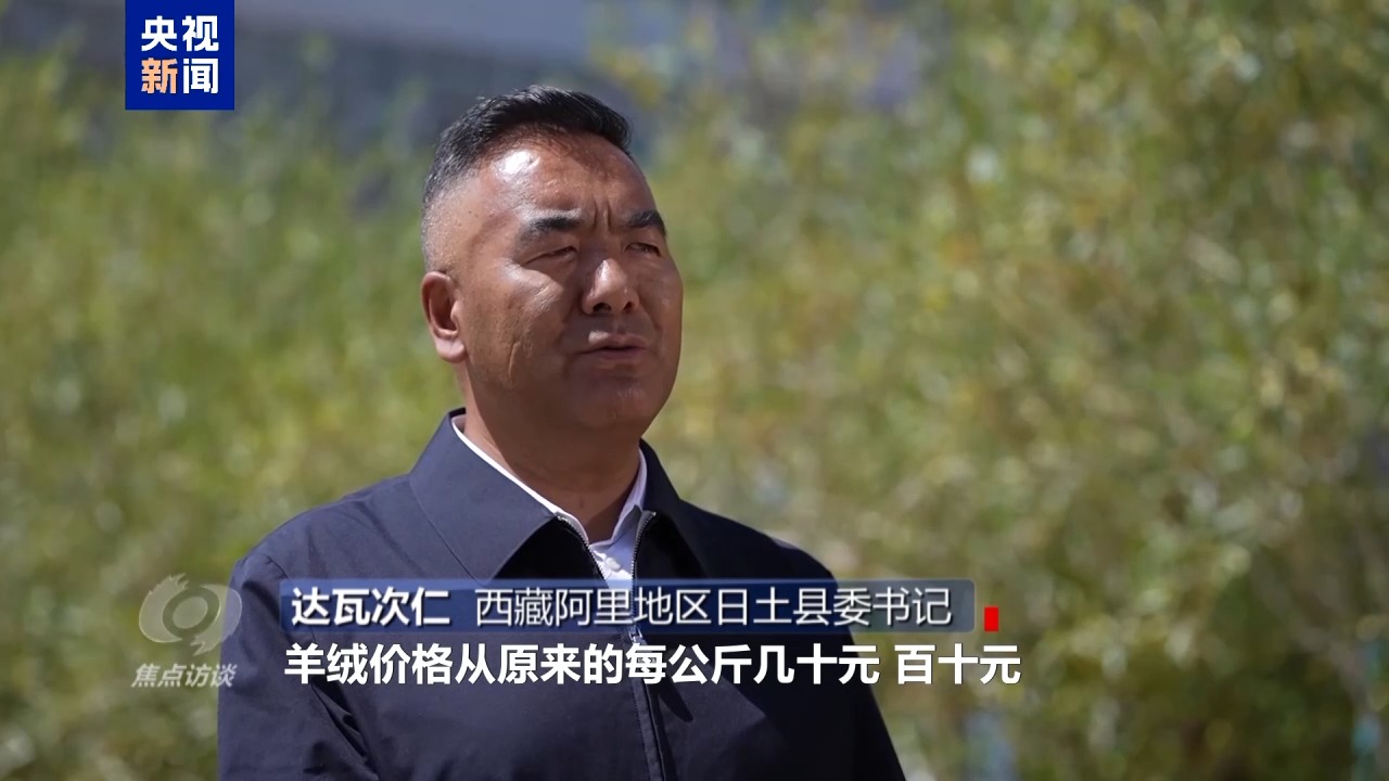 西藏阿里地區(qū)日土縣委書記 達(dá)瓦次仁:羊絨價(jià)格從原來的每公斤幾十元、百十元基本現(xiàn)在穩(wěn)定到了三百多元每公斤。
