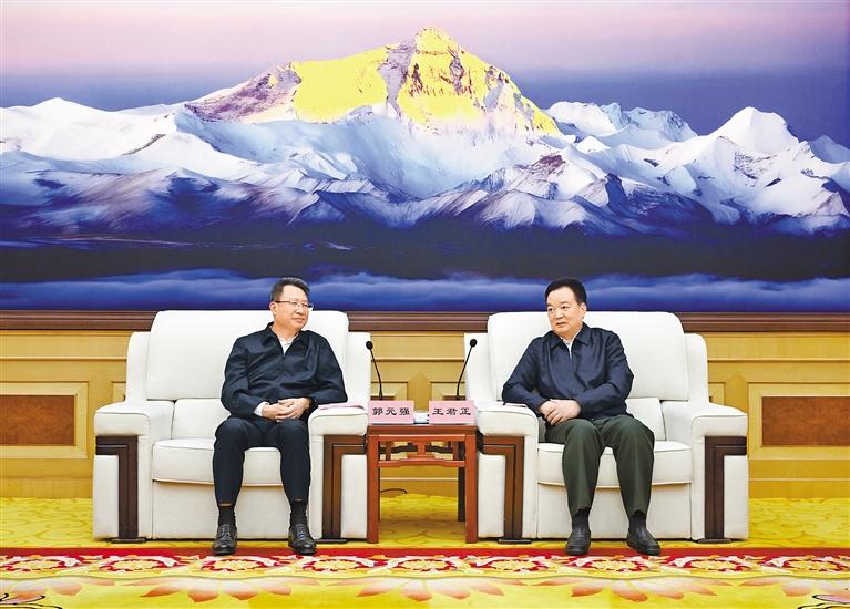 王君正代表自治區(qū)黨委、政府向郭元強(qiáng)一行表示歡迎,并簡(jiǎn)要介紹了西藏經(jīng)濟(jì)社會(huì)發(fā)展情況。他說(shuō),黨的十八大以來(lái),以習(xí)近平同志為核心的黨中央高度重視西藏工作,習(xí)近平總書記多次作出重要指示批示,確立了新時(shí)代黨的治藏方略,明確了“穩(wěn)定、發(fā)展、生態(tài)、強(qiáng)邊”四件大事,提出了長(zhǎng)治久安和高質(zhì)量發(fā)展的戰(zhàn)略目標(biāo),為我們做好西藏工作指明了前進(jìn)方向、提供了根本遵循。自治區(qū)黨委團(tuán)結(jié)帶領(lǐng)全區(qū)各族干部群眾,深入貫徹習(xí)近平總書記關(guān)于西藏工作的重要指示和新時(shí)代黨的治藏方略,持之以恒抓好“四件大事”落實(shí),推動(dòng)各項(xiàng)事業(yè)不斷取得新成效。