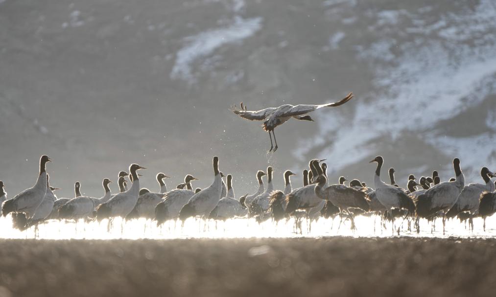 黑頸鶴主要棲息在高原海拔2500米至5000米的草甸、沼澤地帶,是世界上唯一生長、繁殖在高原的鶴類,也是國家一級保護動物,有“高原仙子”的美稱。每年3月中下旬,黑頸鶴向北方各繁殖地遷徙;10月,開始結(jié)群帶領(lǐng)幼鳥南遷至西藏林周等地越冬。