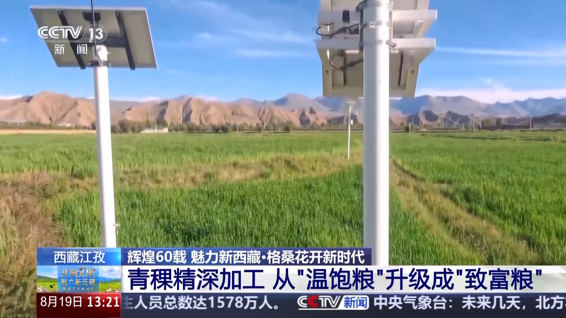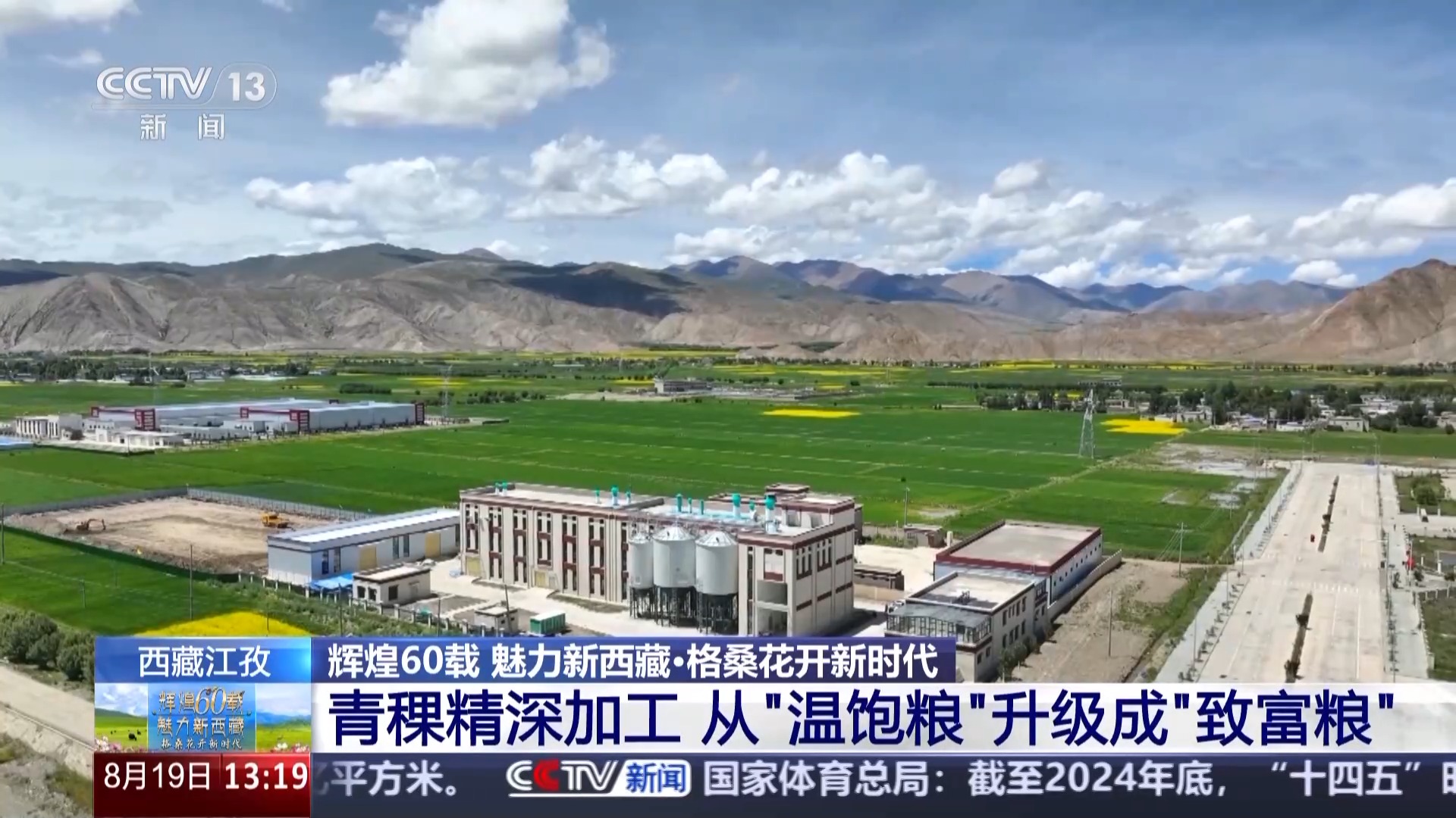 總臺(tái)記者 于晨:我現(xiàn)在是在江孜縣的一家專注于青稞產(chǎn)品研發(fā)的科技公司,去年9月,全國首條青稞谷物專用生產(chǎn)線在這里落地,填補(bǔ)了行業(yè)的空白,這讓青稞的得粉率由原來的60%以下提升至了70%以上。