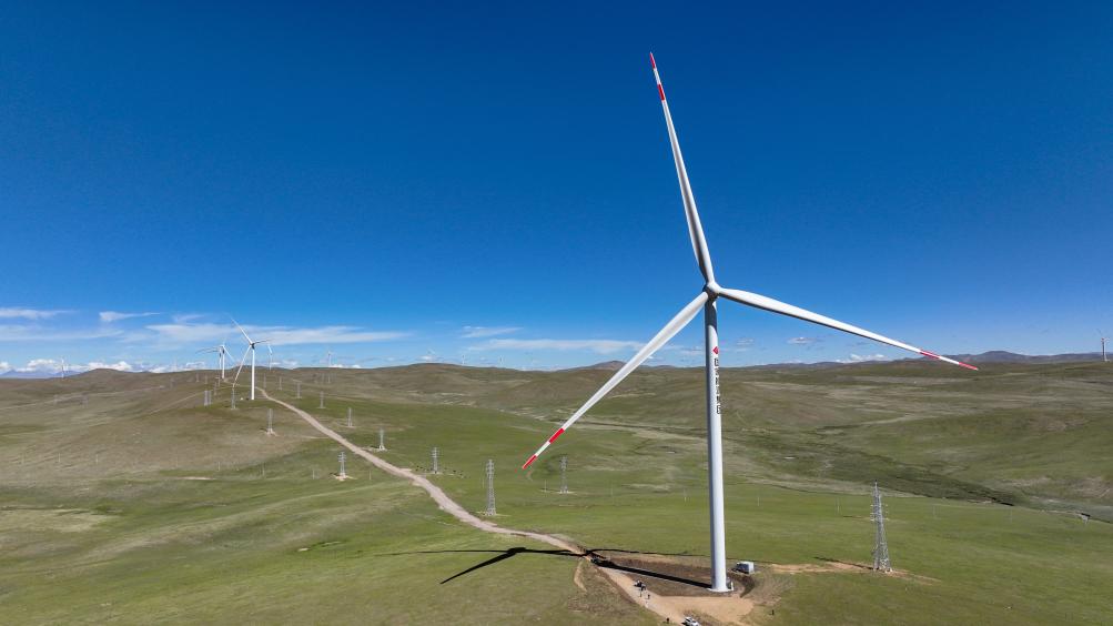 2025年7月17日拍攝的那曲市歐瑪亭嘎100兆瓦風電場。新華社記者 晉美多吉 攝